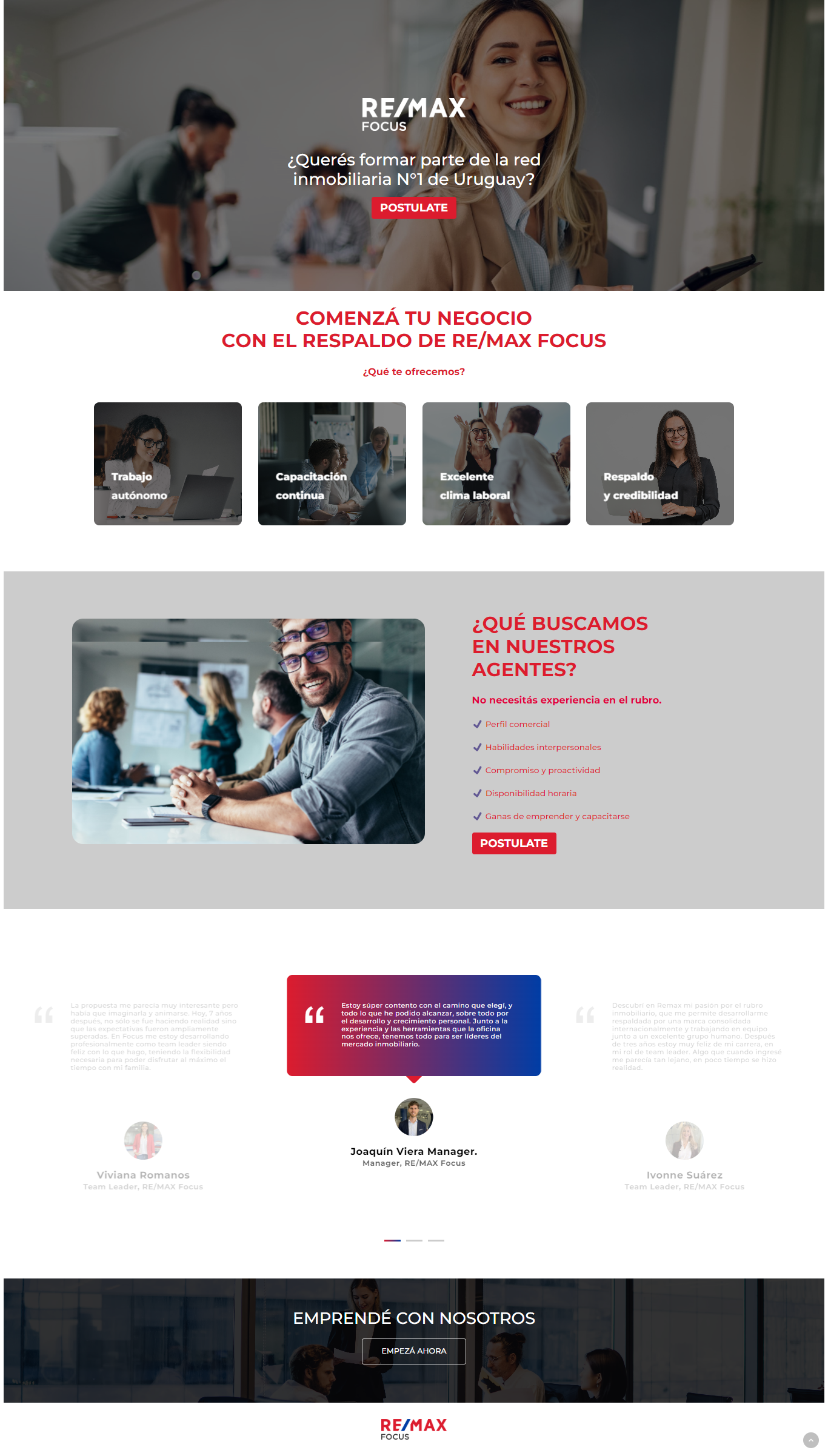 Remax Chile: Edición de Templetes en PHP y JavaScript, creación de plugin que se integran a apartados de la pagina web mediante shortcouts. Remax Uruguay: Desarrollo de LandingPage de aterrizaje para conversión de LEADS, desarrollada en WordPress.